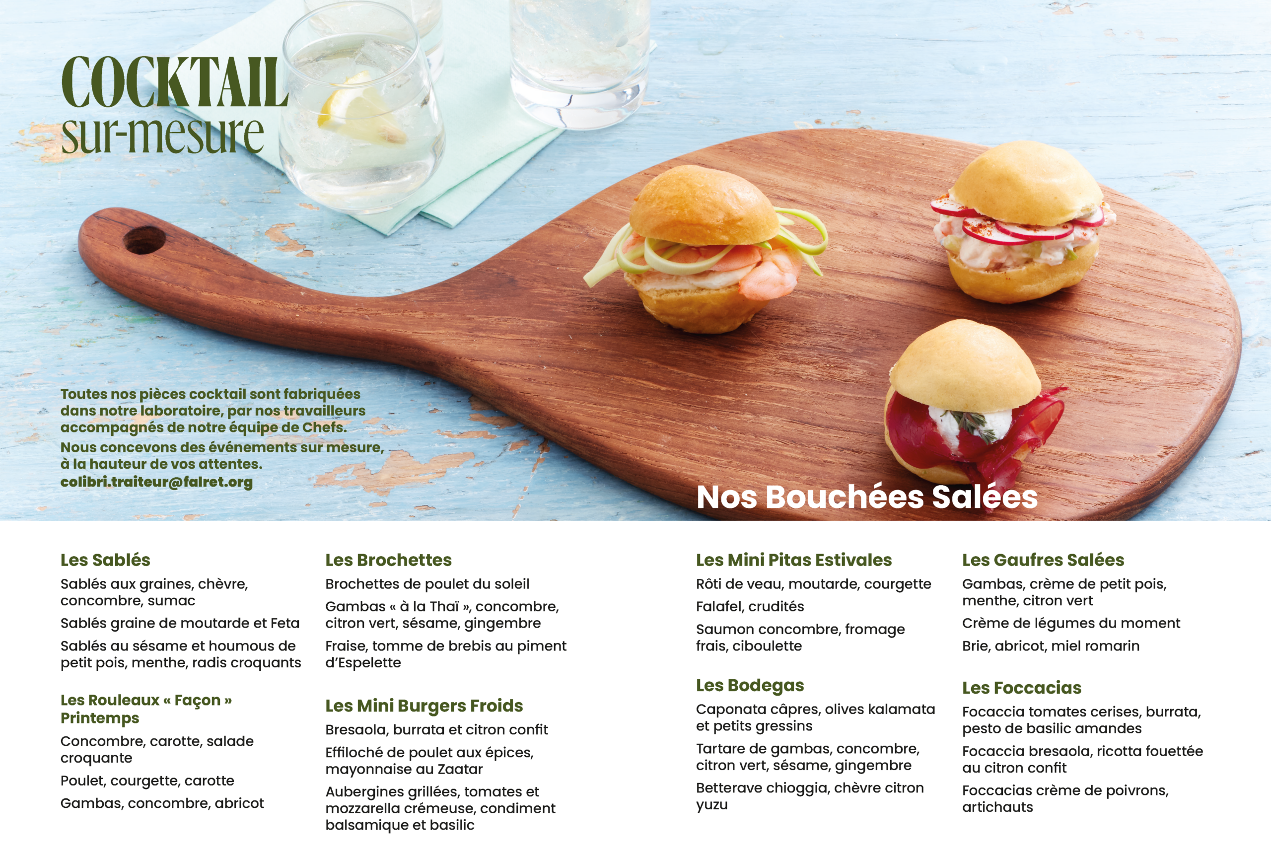 Nos cocktails sont conçus pour marquer vos réceptions, alliant variété, qualité et présentation soignée.