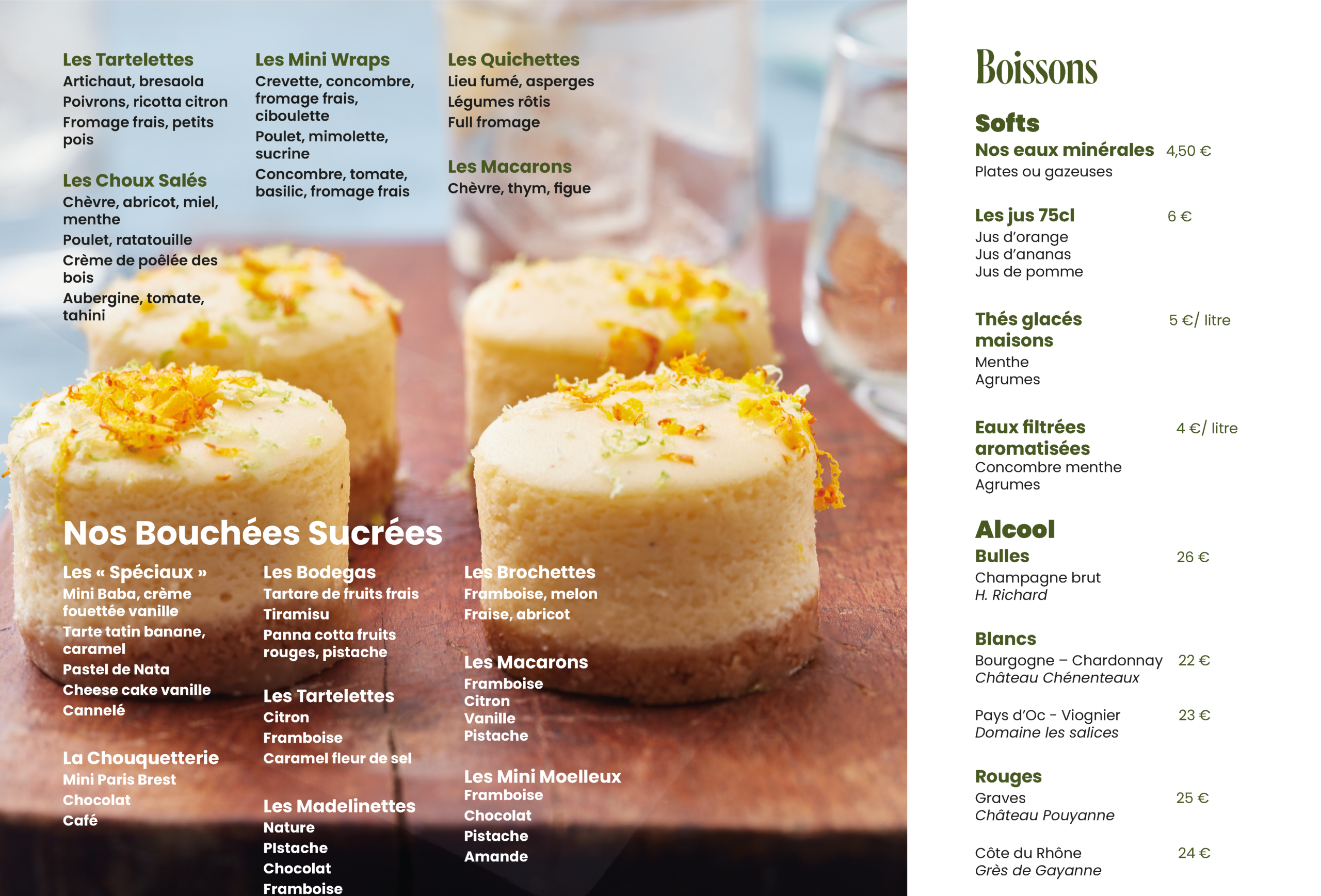 Notre service de cocktails déjeunatoires et dînatoires vous propose une variété de pièces salées et sucrées, préparées à partir d’ingrédients de qualité et de saison.